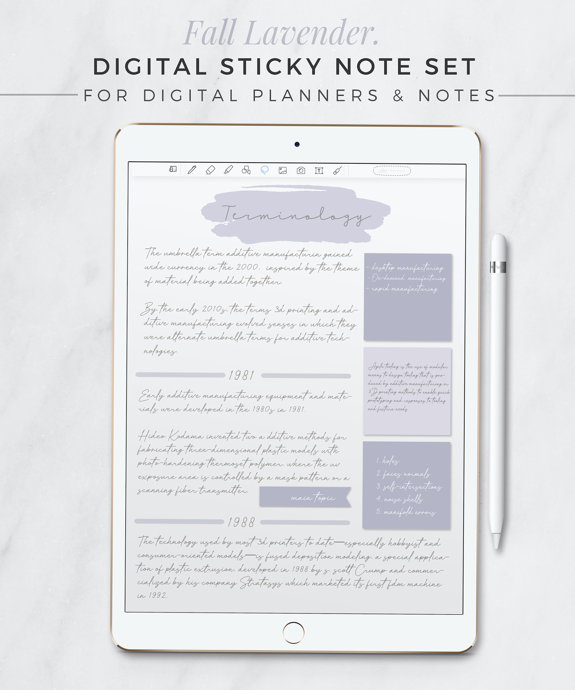 This Digital Sticky Notes Set includes earthy color sticky notes, page markers, and brush strokes. The template can be used in your favorite iPad note app, like Goodnotes, Notability, of any kind of note app that supports PNG images.